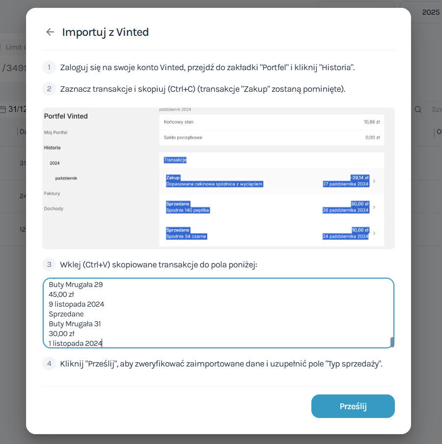 Import transakcji sprzedaży z Vinted do aplikacji Pantax